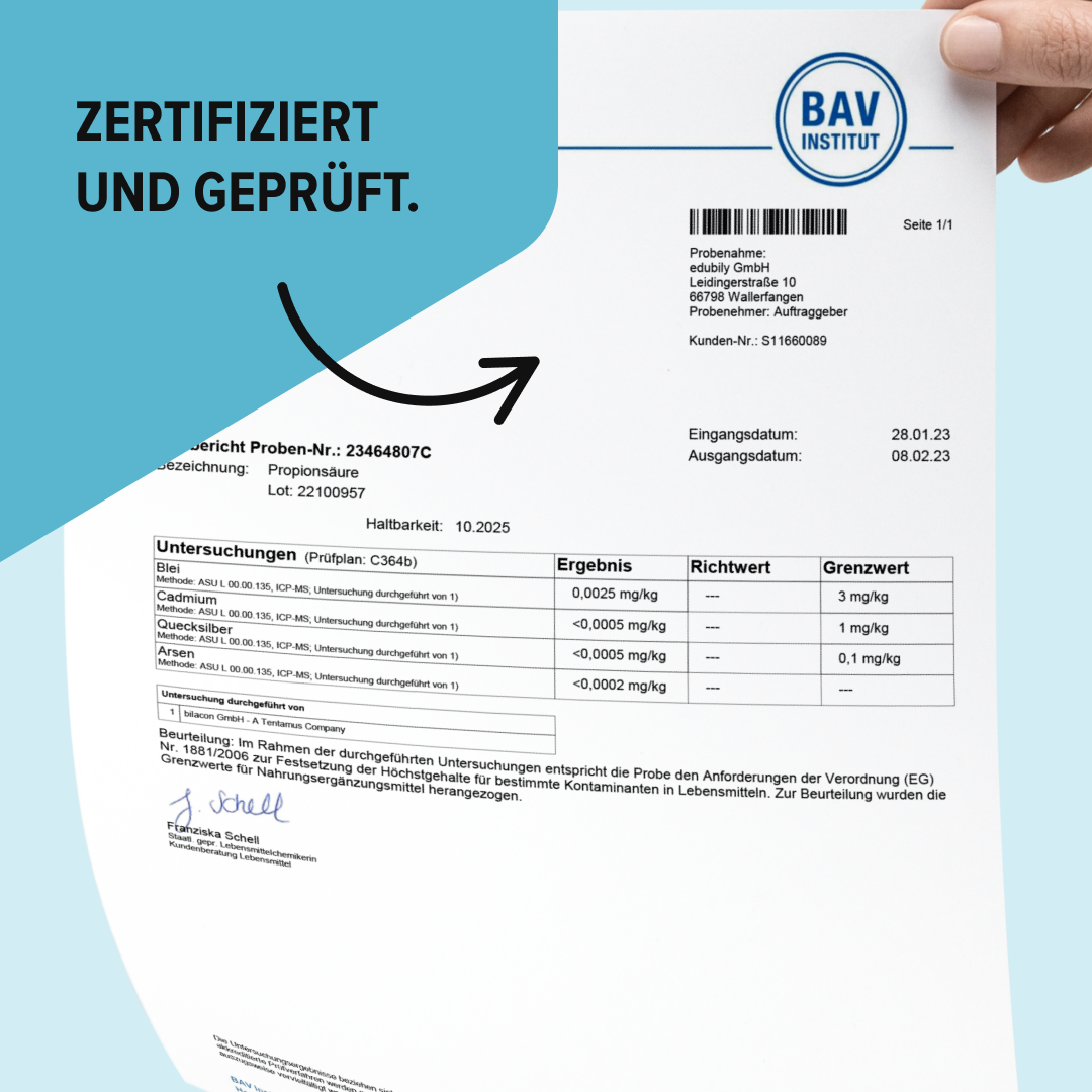 Geprüfte, hochreine Rohstoffe mit regelmäßigen Qualitätsanalysen