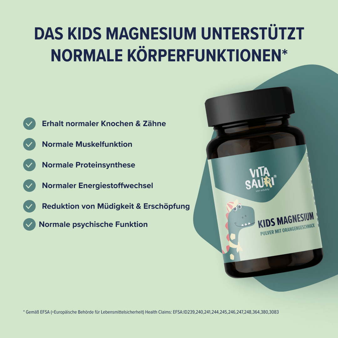 Magnesium ist ein essentielles Mineral, das im Körper vielfältige Aufgaben übernimmt. Es trägt zu einer normalen Muskelfunktion, zu einer normalen Funktion des Nervensystems und zu einem normalen Energiestoffwechsel bei. Auch für die Verringerung von Müdigkeit und Ermüdung, die Erhaltung normaler Knochen und Zähne sowie eine normale psychische Funktion spielt Magnesium eine wichtige Rolle. Da es an vielen Prozessen beteiligt ist, ist eine ausreichende Versorgung im Kindesalter besonders bedeutsam.