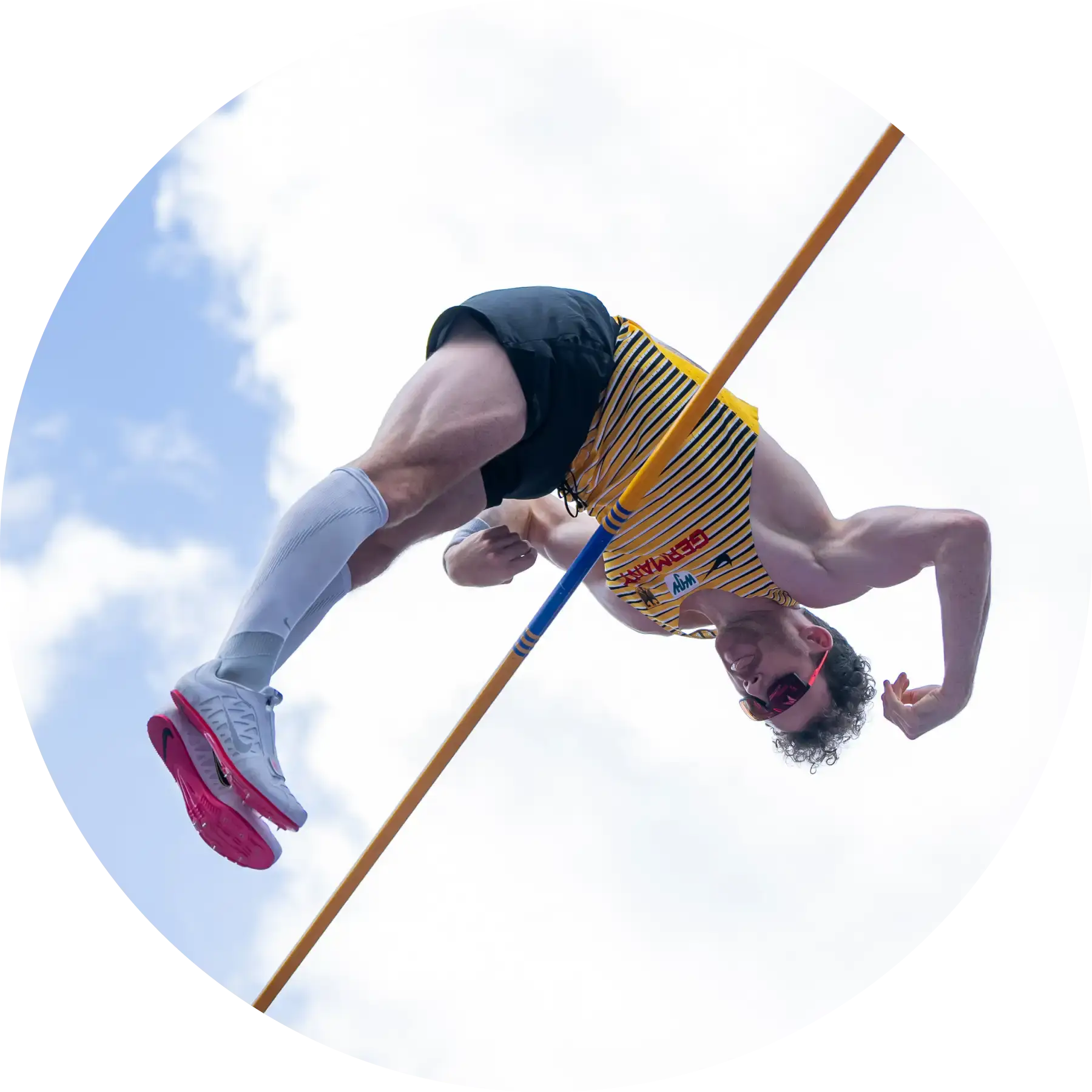 Jeder Sprung ein Statement! Torben Blech setzt mit kraftvollen Höhenflügen Maßstäbe. Internationale Finals wie die EM 2023 und 2024 sind Routine. 2025 startet er mit mit starken 5,80m. Die nächste persönliche Bestleistung ist zum greifen nahe!